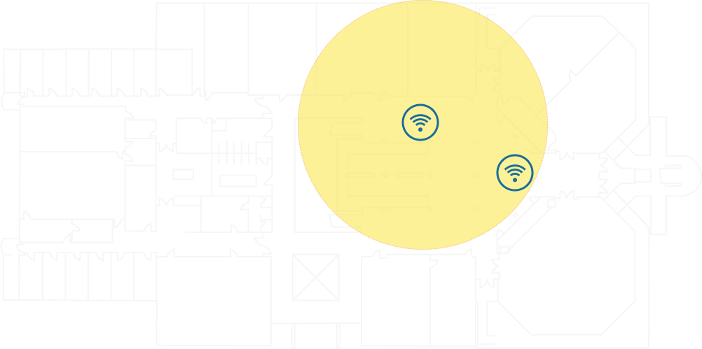 A multi-cell is a network of several base stations within a building or an open area. These are positioned in such a way that the effective circles of the individual radio cells (DECT bases) overlap. This not only guarantees area-wide availability, but also allows the subscriber making the call to move freely between the individual base stations without the call being interrupted ("seamless handover"). This is made possible by a DECT manager integrated in each base station, which transfers the telephone call to the next base station with the best reception performance to the handset without interruption.