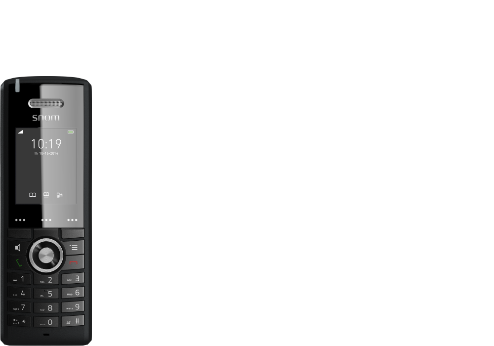 En combinaison avec la base Snom M400/M900, le M65 offre également une variété de fonctions téléphoniques pratiques telles que l'échange d'appels, la conférence, les listes d'appelants ou l'accès direct à un répertoire téléphonique d'entreprise.