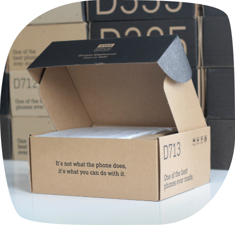 Il team del nostro Product Management ha preso a cuore il progetto green e il suo ambizioso obiettivo. Così, gli imballaggi sono stati ridotti in modo significativo e tutti i materiali di confezionamento sono passati dalla plastica alla carta. Sono peraltro parecchi anni che l'imballaggio dei dispositivi Snom è costituito da scatole di cartone marrone puro e non verniciato, particolarmente facili da riciclare.