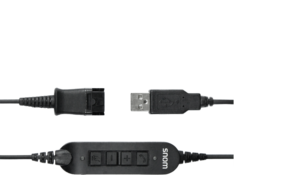 Il cavo adattatore QR Snom ACUSB permette di collegare tramite USB le cuffie Snom A100M/A100D a tutti i telefoni fissi Snom e ai PC (Windows, Mac OS, Linux) dotati di connettività USB.