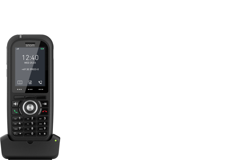 Lo Snom M80 è il perfetto tuttofare per l'uso in interni e in esterni. Questo telefono cordless è estremamente leggero e compatto e, grazie allo speciale involucro certificato IP 65 e MIL-STD 810g, è particolarmente robusto e durevole. Infatti, può facilmente resistere a cadute fino a 2 metri e non teme nemmeno spruzzi d'acqua e polvere. Questo rende lo Snom M80 adatto non solo all'ufficio, ma anche a luoghi più "impervi" come capannoni, cantieri o aree esterne.
